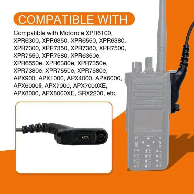 This microphone is compatible with Motorola MOTOTRBO IMPRES XPR Series and APX Series, such as model XPR6300, XPR6350, XPR6380, XPR6500, XPR6550, XPR6580, XPR7350, XPR7550, XPR7380, XPR7580, XPR7550e, APX6000, APX7000, APX8000, APX 8000xe, APX6000 xe, APX6000li, APX4000, Replacement for PMMN4024A PMMN4025 PMMN4025A PMMN4025AL PMMN4045B.