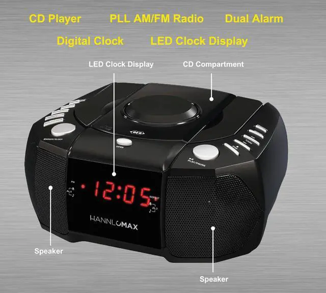 CD Player with PLL AM/FM Radio, Digital Clock wtih Dual Alarm, Red LED Display, Aux-In, AC Operation only.