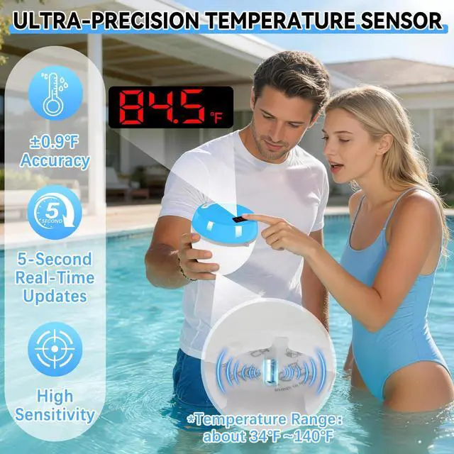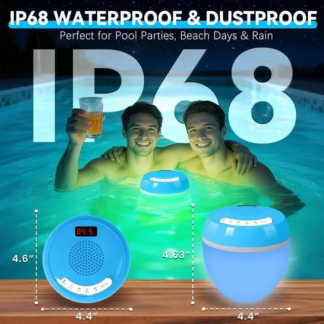 &: Tired of guessing if the pool is warm enough? Welcome to the future of poolside fun with the 3-in-1 Floating Pool Speaker the first bluetooth speaker with a built-in precision thermometer! Instantly check the water temperature (34F140F) on the bright digital display before diving in. Paired with vibrant 7-color mood lighting and powerful HD sound, its not just a speakerits your smart poolside command center for the perfect, worry-free