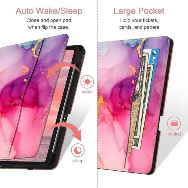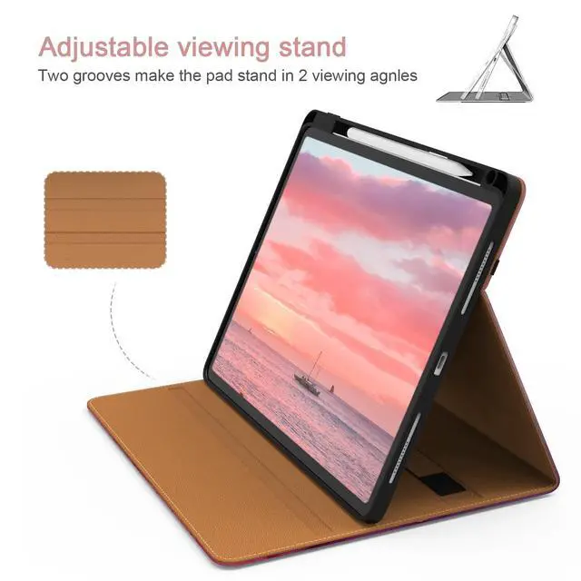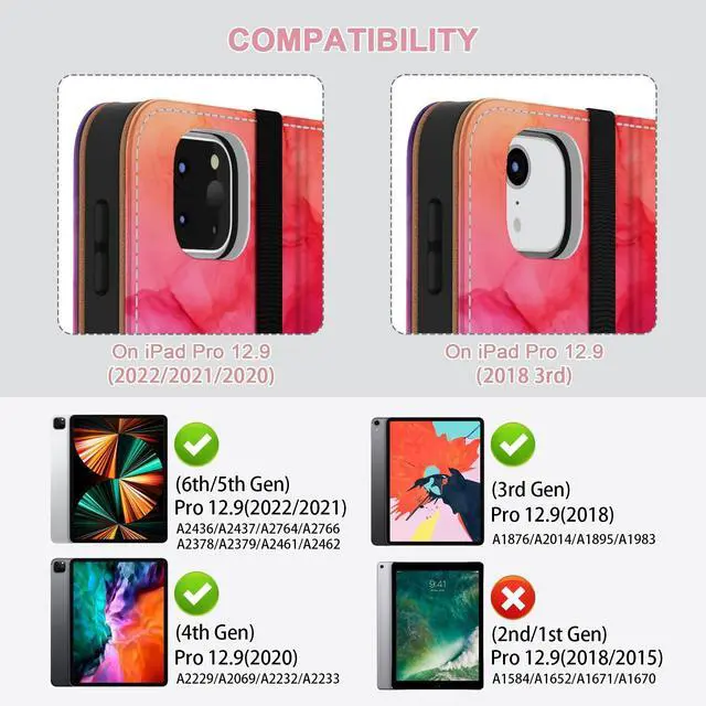 [Compatibility] Jarviwiin case only fit for iPad Pro 12.9 inch 6th 2022 /5th 2021 /4th 2020 /3rd 2019 (Model: A2436 / A2437 / A2764 / A2766 / A2378 / A2379 / A2461 / A2462 / A2229 / A2232 / A2233 / A2069 / A1876 / A1895 / A1983 / A2014). Not compatible with any other devices. ^^ [Full Protection] Made of durable Premium PU leather and soft TPU, front and back covered by soft Premium PU leather, the inside durable TPU can fix your iPad and protect its back cover and four corners, maximum protect your iPad from drop and scratch, the surface is soft and silky to provide a comfortable touch to the skin. ^^ [Multi Function] The front of the protective case is equipped with a pocket to keep cards, cash, and notes. And the case has a built-in pencil holder, which allows you to carry and protect your pencil wherever you go. (Pencils are not included) ^^ [Multiple Usage Scenarios] The protective case can have two grooves and a strap to keep the iPad at its most commonly used angle, making it easy for you to use in multiple scenarios, such as typing, video chatting, and watching movies. ^^ [Auto Wake/Sleep] Built-in hidden magnetic strip provides sleep/wake feature, save the energy in daily use.