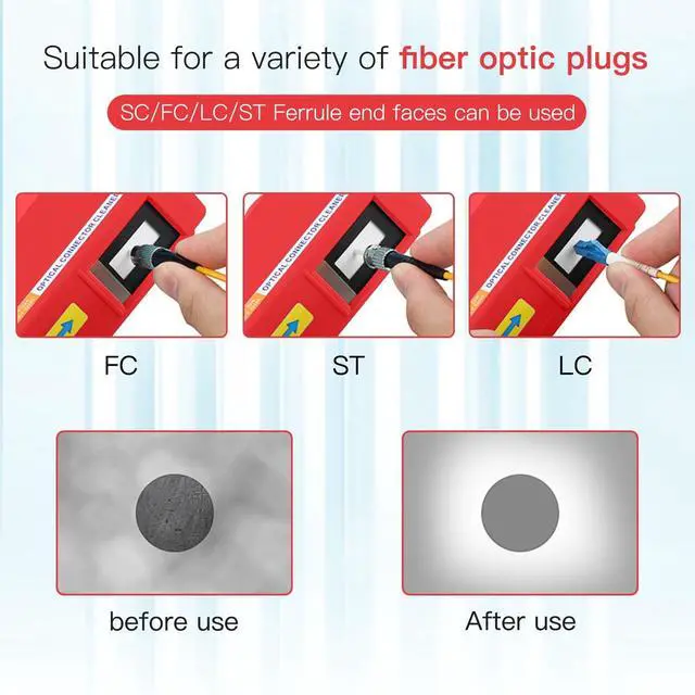 ^^ More than 500 CleaningRecycle clean times up to 500+, even severe serious stain can be completely cleaned at once. ^^ Excellent Antistatic PropertiesMade of anti-static material, it can effectively avoid re-adhesion of dust after the optical fiber is cleaned. ^^ WIDELY UESDOptical experimental research, also for indoor and outdoor optical fiber communication construction, maintenance, and fiber equipment.