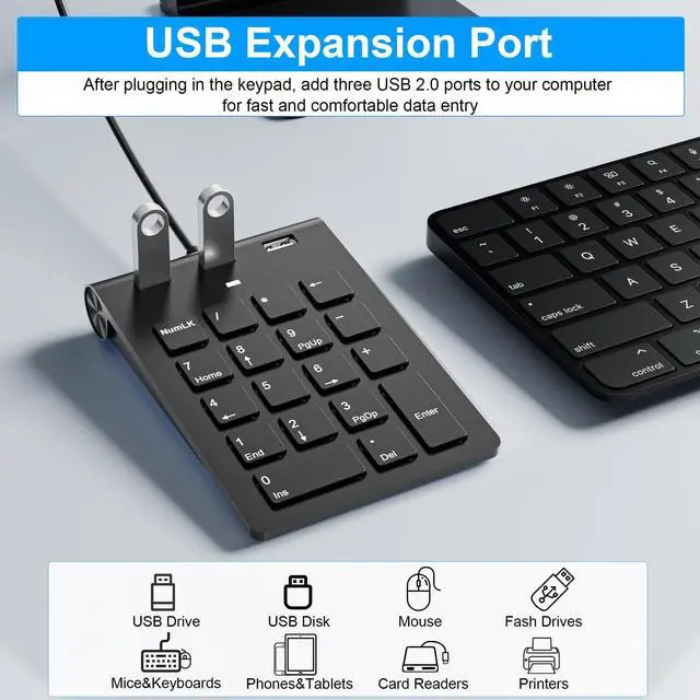 2 IN 1 Numpad & USB HubThe numeric keypad is equipped with dual USB A and USB C ports, ensuring seamless connection with various devices. Whether it's a device with a traditional USB interface or a modern Type-C interface, it's easily compatible. It offers you an efficient and conv