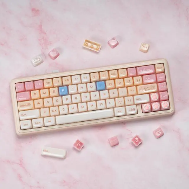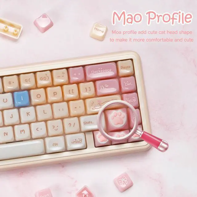 ^^ MOA Keycaps: Cute MOA keycaps increases the contact surface between the keycap and the fingers, tailored for ergonomic comfort and aesthetic pleasure. Round keycaps are evenly spaced in each row, the finger touch area is larger, typing sound is more even and edge line is more rounded, long-term use is not easy to fatigue. ^^
