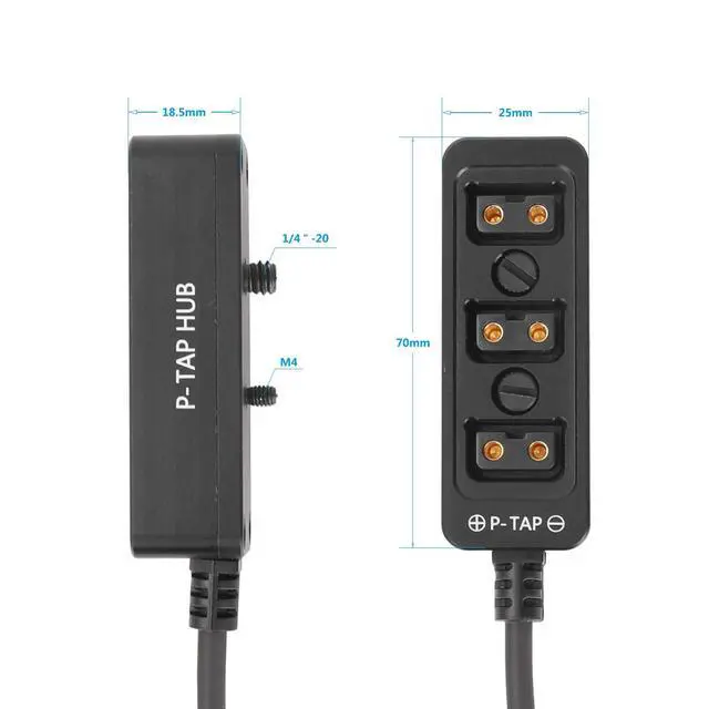 HangTon DTAP Power Splitter Triple Cable Box Hub, D-tap Male to Female 3 Port Distributor for ARRI Camera Anton Bauer Battery Ronin 2 1/4" Mount (50cm, Black)
