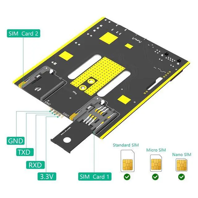 • 2.Supports SIM/Micro SIM/NANO SIM card, and support dual SIM Card by AT Command.