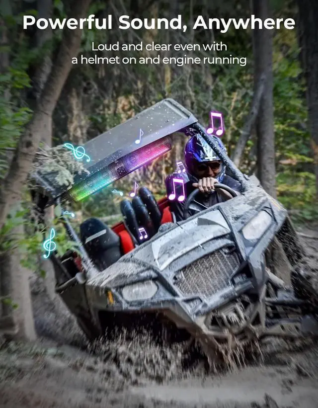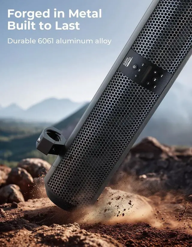 Vibrant RGB Light Modes: The kemimoto 28 inch 6-speaker UTV sound bar features dynamic RGB lights with 5 different illuminating modes (music sync, solid, fading, jump, or off). The multicolor lights in sync mode can pulsate and groove to the beat of your music. When you don't require the RGB light, simply turn it off by downloading the app to conserve battery life ^^ What is good about an ALUMINUM sound barIt is sturdy, more impact-resistant, better heat dissipation and better sound quality. Aluminum's high stiffness and density help reduce unwanted vibration and resonance, resulting in a clearer, cleaner sound output. At the same time, aluminum has good thermal conductivity, which helps keep internal components at a lower temperature during extended periods of operation, thus stabilizing the performance of the device and avoiding sound distortion or damage caused by overheating ^^