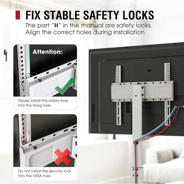 Wires: No need to see those wires anymore! A specially designed wire management is made to hide all your wires. Power cords, HDMI cables and the like are well hidden from view. This also enables you to hide the wires without going through the wall and making holes and or hiring an electrician to do it