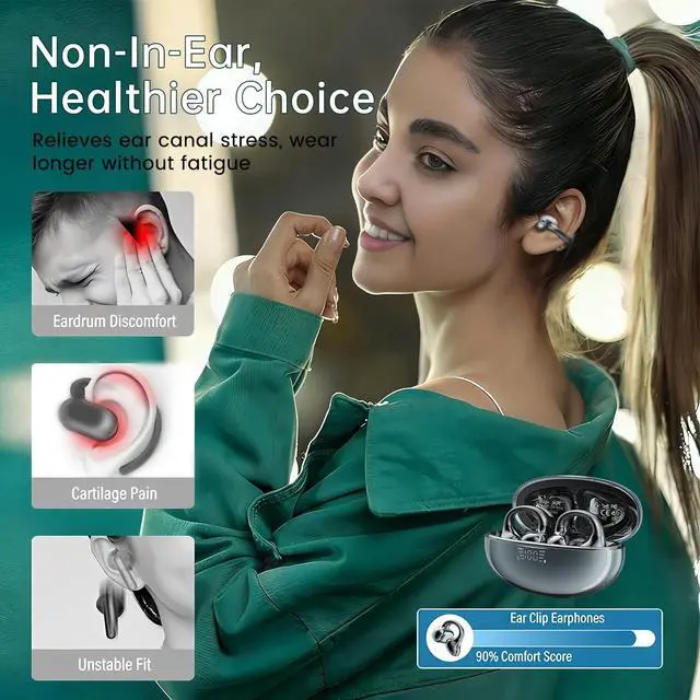 Experience premium wireless audio with these sleek Bluetooth earbuds featuring secure ear hooks for a stable fit during intense activities. Powered by advanced Bluetooth 6.0 technology, these earbuds deliver seamless connectivity and impressive sound quality. The built-in high-definition microphone ensures crystal-clear calls, while the ergonomic design provides lasting comfort during extended wear. Perfect for fitness enthusiasts, these earbuds are engineered to withstand water and sweat, making them ideal companions for running, workouts, and outdoor adventures. The charging case displays battery levels for both left and right earbuds through an intuitive LED display, helping you stay informed about power status.