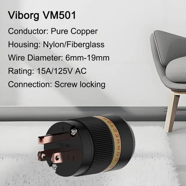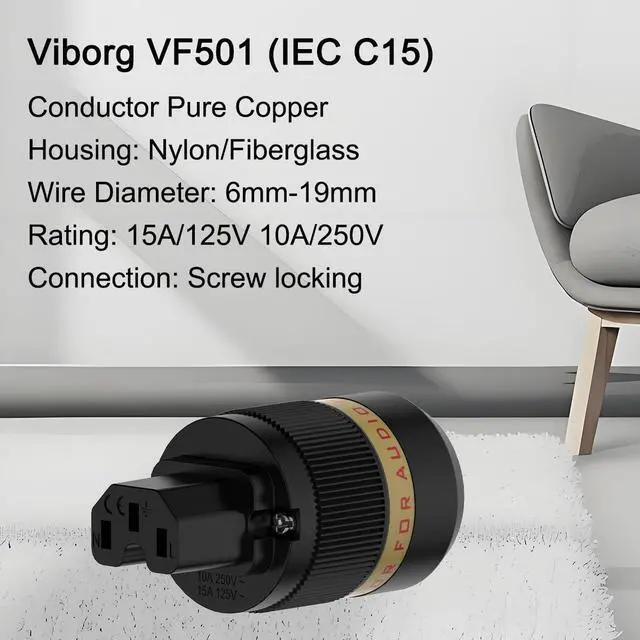 ^^ Exquisite Craftsmanship: Viborg Hi-end Power Plug and IEC C15 Connectors stunning design and aesthetics exemplify exquisite craftsmanship, adding sophistication and class to your audio system.