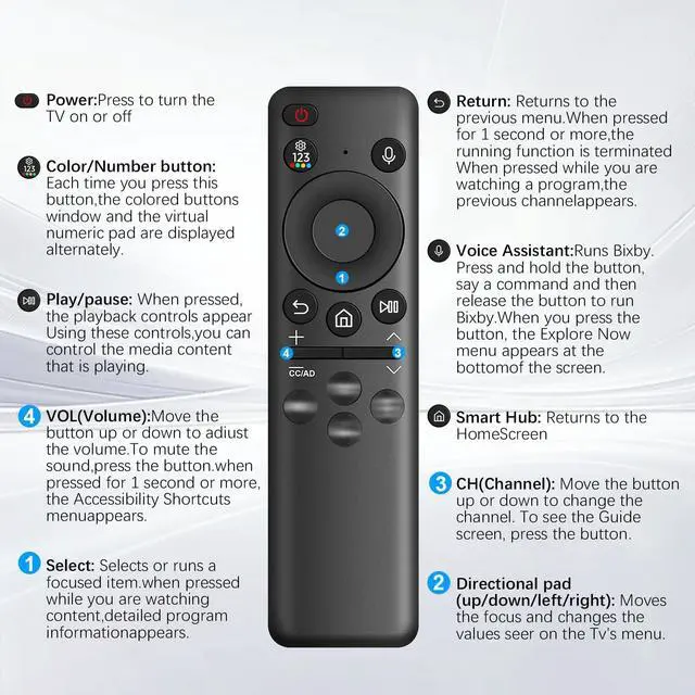 • Easy Voice Control: Seamlessly remote control your for S-sung TV Smart with the BN59-01385A voice remote. Includes a dedicated Bixby button for voice commands, allowing you to access apps, adjust settings, and more with ease.