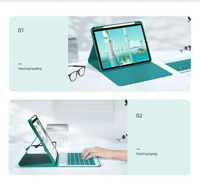 Detachable design When you don't need to use the keyboard, you can take out the magnetic wireless keyboard freely. The keyboard has Color buttons , Fashi
