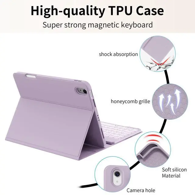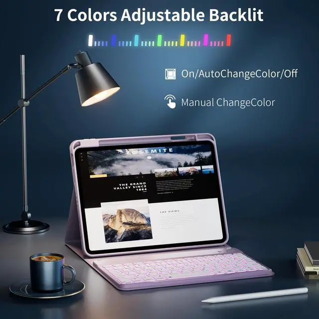 Detachable 7 Colors Backlit Keyboard : The 7 pure LED colors backlit make typing fun and easy, whether in the dark or in bright environments. For iPad Air 5th generation keyboard case is easy to attach to or remove from the magnetic cover case and instantly connect via Bluetooth. Well designed Bluetooth keyboard is very responsive. There are no delays when you are typing