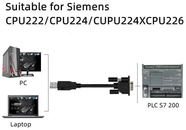 Product Summary1. For 6ES7901-3DB30-0XA0 replacement. 2. Compatible for Siemens PLC S7 200, for Siemens touch panel KTP600DP KTP1000DP TP177Micro TP177A TP177B and TP178. To transfer program / data between computer and PLC. 3. Also compatible for Siemens CPU222 CPU224 CPU224XP CPU226 and etc. 4. NOT support S7 200 SMART. 5. Support Windows 98/XP/Vista/2000/7/8/10/ 11.6. Compatible for STEP 7 MicroWin V 4.0 SP9 and above. 7. No driver installation is required. Specification1. With LED communication indicators. 2. Support RS485, PPI and PPI+.