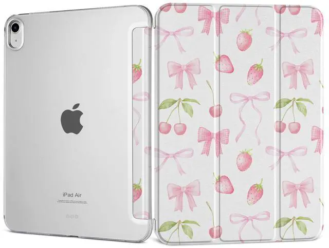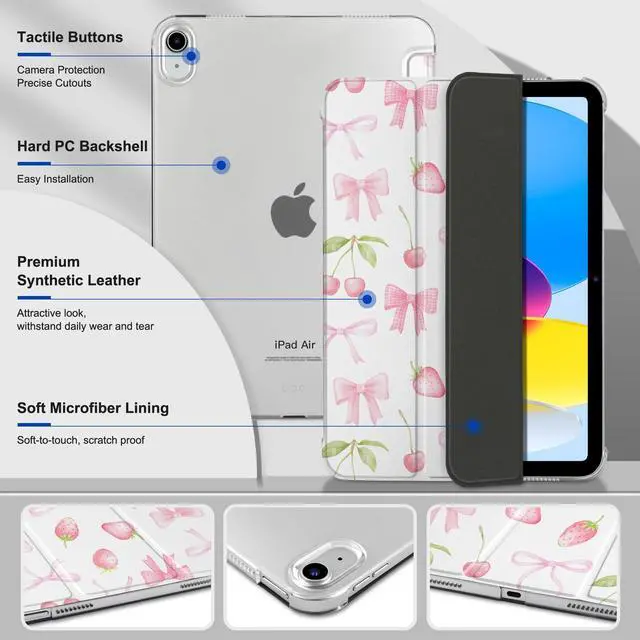 DONGKE for iPad Air 11-inch M4 2026 M3 2025 M2 2024, iPad Air 5th 2022 / 4th Gen 2020 10.9-inch, Slim Foldable Stand Hard PC Translucent Back Shell Smart Cover - [Auto Wake/Sleep] - Cherries