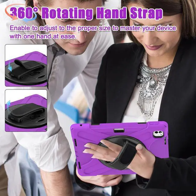 Note: This case does not include a screen protector, providing you the option to choose your preferred type. Integrated Pencil SlotKeep your Apple Pencil secure and easily accessible with the dedicated side slot, designed to fit the original position on the compatible with iPad Pro 13 (2024). This feature is ideal for students, professionals, and artists, ensuring your pencil is always within reach, boosting productivity and creativity. Versatile Viewing OptionsThe built-in kickstand offers multiple viewing angles, making it perfect for typing, watching videos, or drawing. Adjust your iPad Pro to the optimal angle for any activity, enhancing your comfort and efficiency whether at a desk or on the go. 360-Degree Rotating Hand StrapEnjoy maximum flexibility with the adjustable hand strap that rotates 360 degrees. This feature ensures a secure grip and allows for effortless one-handed use in both portrait and landscape modes. Ideal for presentations, reading, and navigating apps. Travel-Friendly DesignOur case includes a detachable shoulder strap for hands-free carrying, perfect for travel, commuting, or outdoor activities. The sleek design ensures full access to all ports, buttons, and features without removing the case, enhancing the practicality of your compatible with iPad Pro 13-in.