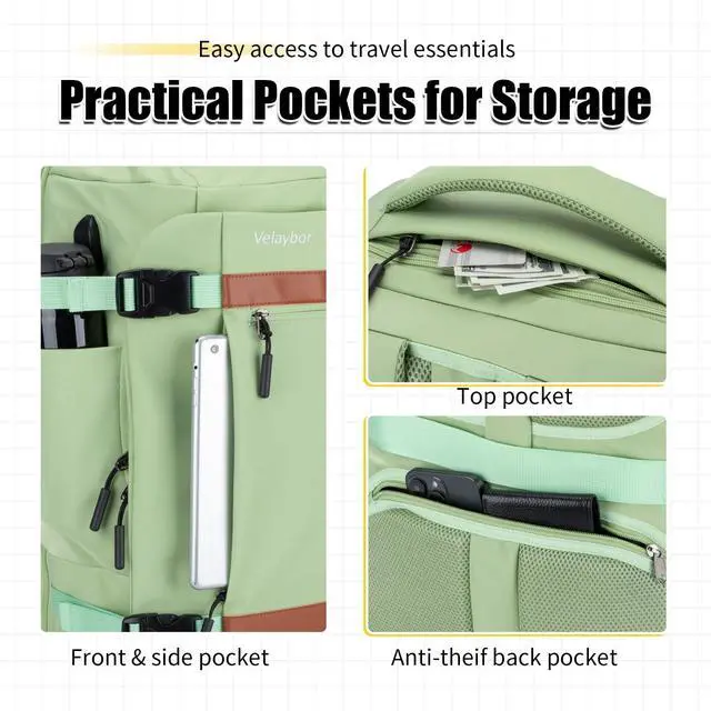 Water-Resistant Material: Made of high-quality polyester with reinforced YKK zippers, this travel backpack resists light rain and daily wear. Built for long-lasting use on business trips or weekend getaways ^^ Comfortable to