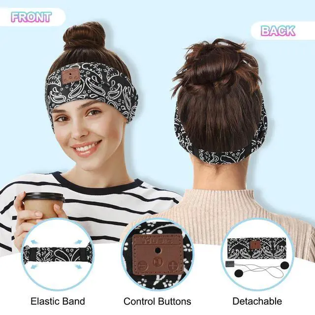 The control panel is on the middle of your forehead, and the headphones are thin, you wont feel any pressure on your ears, these are very friendly to side sleepers. ^^ Upgraded Speakers Produce Excellent Stereo Sound ExperienceBluetooth headphones headband features 2 built-in ultra-lightweight headphones and quality chip set to produce clear sound, suitable for all occasions where you want to immerse yourself in your world. The wireless headband headphones equipped with Bluetooth 5.4 technology, fast pairing speed and low power consumption, it provides more stable connection with your phones, tablets, laptops.