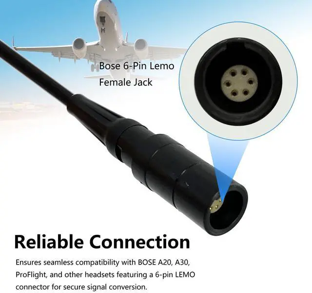 Fits for Bose A20 A30 aviation headset lemo 6-pin plug. It can ensure easy connection from your Bose A20, A30, ProFlight, or other headsets with 6 pin LEMO connector to fit twin ga general aviation headset, providing versatility for pilots.