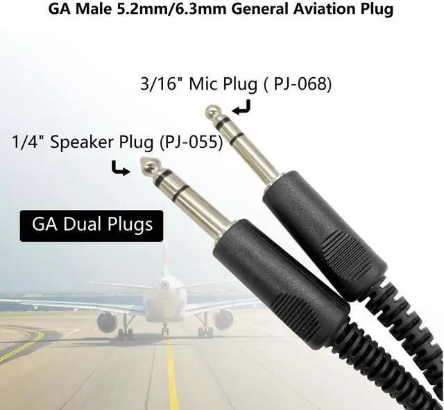 Compatibility-Connect 6 pin lemo plug bose a20 a30, ProFlight, and other headsets with a 6 pin LEMO to Dual GA Plugs (3/16" Mic plug ( PJ-068) .206'' and 1/4" (PJ-055) .25''Speaker plug ) general aviation headset. One adapter cable, two types of aircraft headset.