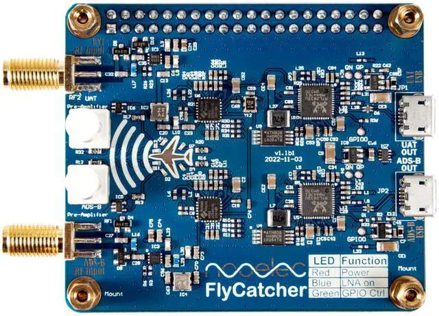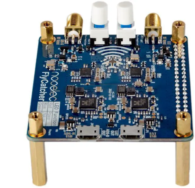 FOR FULL SPECIFICATIONS AND DETAILS, PLEASE REVIEW THE PRODUCT PAGE AT NOOELEC. COMIntroducing the FlyCatcher dual-channel UAT and ADS-B SDR, a cutting-edge Raspberry Pi HAT designed to revolutionize aviation enthusiasts' and tech enthusiasts' experiences with airplane tracking applications. This compact and versatile device boasts a dual-channel SDR, with one side dedicated to receiving UAT signals at 978MHz and the other tuned into ADS-B signals at 1090MHz. With its exceptional sensitivity and performance, the FlyCatcher unlocks a world of possibilities for flight tracking, monitoring, RTL-SDR applications, low noise reception, aviation research and analysis, and even weather monitoring.