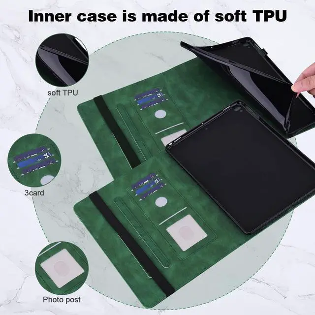 Wallet Feature:The card slots can be used to store credit cards and the pencil holder is designed to carry a touch screen pen, and the elastic strap can be used to fix the protective cover