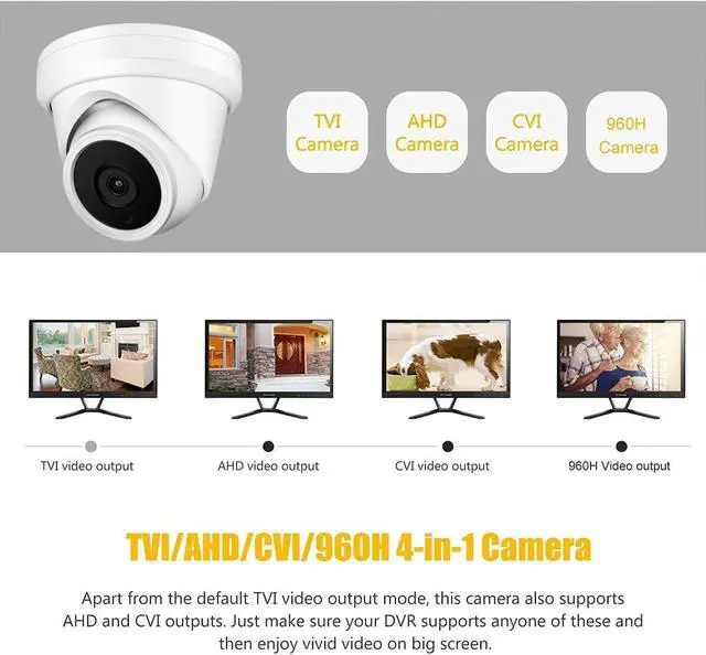 Compatible with Most Brand CCTV System- This camera supports 4MP HD-TVI, HD CVI, AHD and 960H 1000TVL. Video format can be switched according to your DVR type.