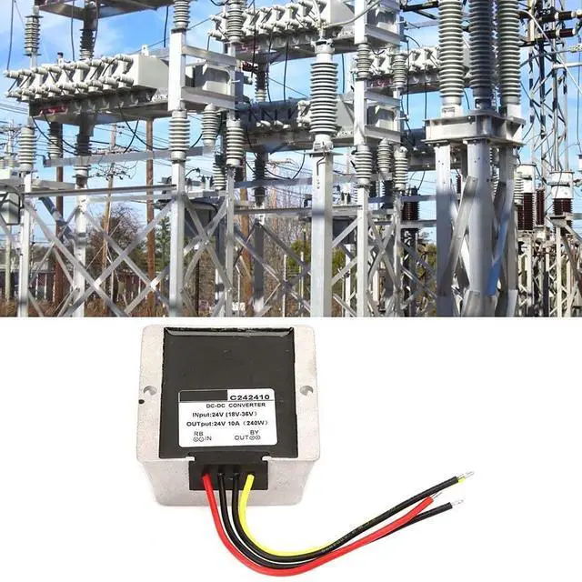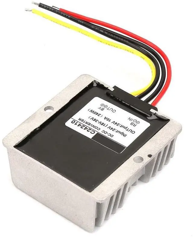 1. brand new and. 2. Made of material, and long service life. 3. Highly integrated SMD components for better stability4. High power and stable output, it converts 18-36V to 24V 0.25. 5. Applicable to industrial vehicle electrical equipment such as LED car display, surveillance camera, electric fan, and motor.