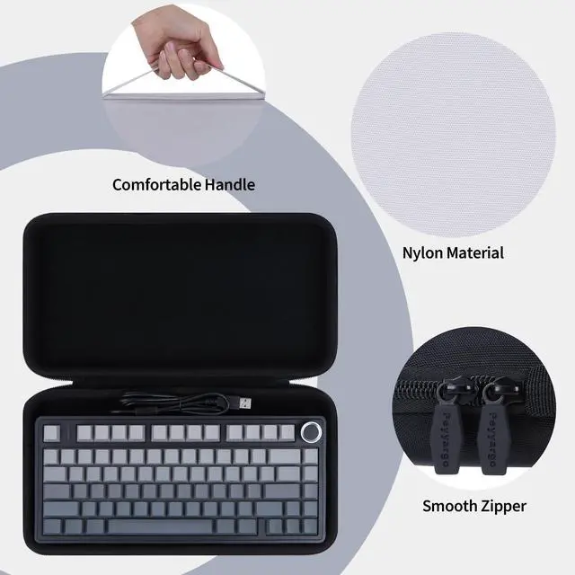 Convenient Design: This Peyyargo case is a tailor-made protective solution for your AULA F75 Pro or F75 or F75 MAX 75% mechanical keyboard, locks your AULA keyboard in place, it shields your 75% keyboard from the jostles of daily travel. The exterior uses premium EVA material to block moisture, keeping your AULA F75 safe in humid environments, while the soft, anti-scratch velvet interior lining guards your gaming keyboards delicate finish and keycaps against scratches and impacts ^^