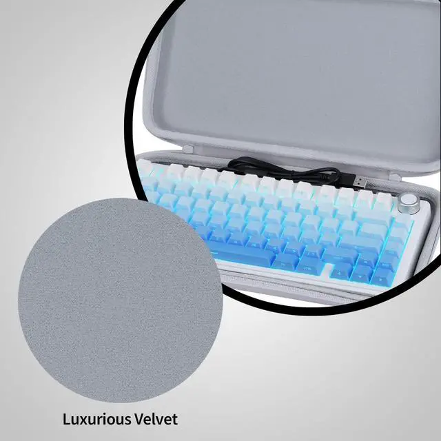 The inside of case: The Peyyargo AULA F75 Pro keyboard cases plush velvet interior lining cushions your AULA F75 Pro and AULA F75 MAX mechanical keyboard against bumps, preserving the smooth look of your AULA F75 Pro and AULA F75 MAX gaming keyboard creamy surface. This velvet fabric also acts as a dust barrier, preventing particles from building up on your 75 percent keyboard and keeping your keys clean and responsive ^^