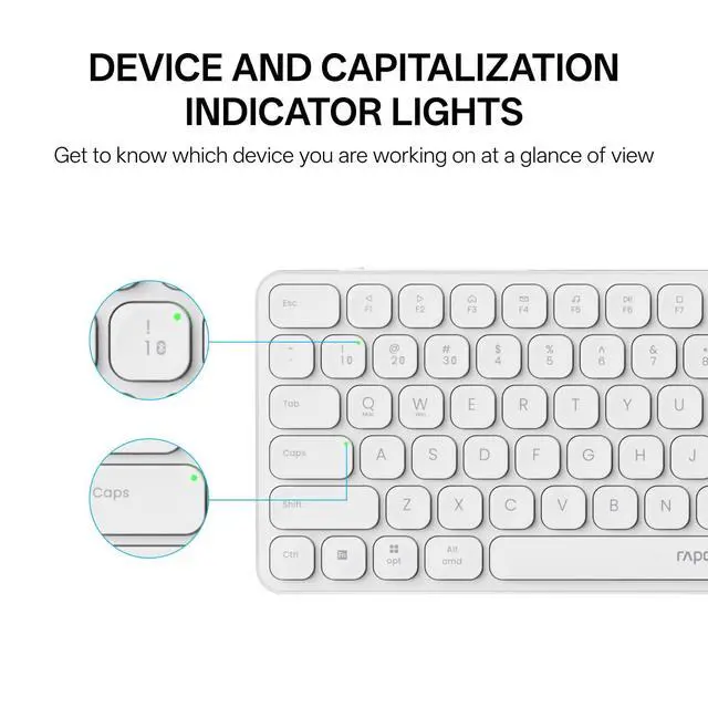 from Customer VoiceThe latest version has added device and capitalization indicator lights for making it easier to find which device you are typing on, and eliminating the inconvenience caused by not knowing the uppercase or lowercase; The Bluetooth 5.0 / 4.0 is upgraded from Bluetooth 5.0 / 3.0 in order to extend battery life, whats more, weve also added a battery indicator for better power management.