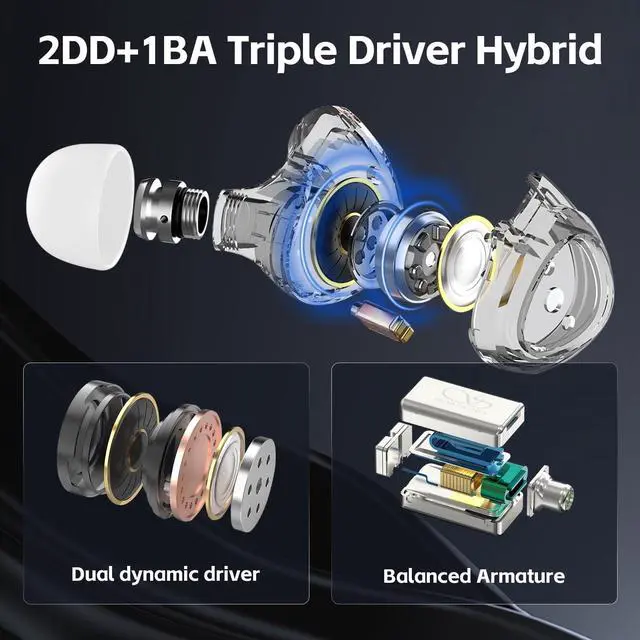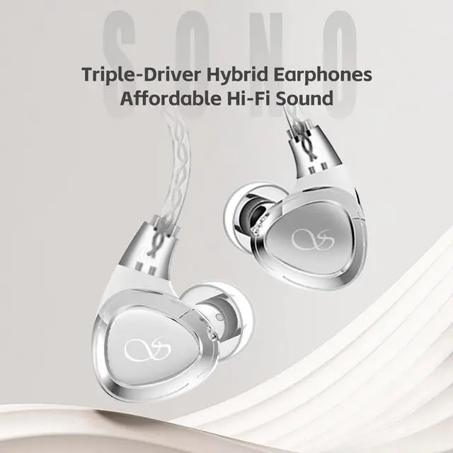 Sound QualityThe in-ear Earphones are equipped with triple dynamic drivers, offering detailed sound. SONO is suitable for personal listening or professional monitoring. ^^ Replaceable HiFi CableSONO Earphones Wired Earbuds comes with a replaceable silver-plated cable. It uses a universal 0.78 dual-pin interface. This enables users have options to replace the stock cable to with-mic cable, bluetooth cable or upgrade cable for different scenarios and more fun. ^^ Two Pair Replaceable Tunning NozzlesSONO Headphone Wired Earphones is furnished with two types of sound Tunning Nozzles, namely "balanced" and "ambient". Neither impacts the frequency response of the high-frequency band.