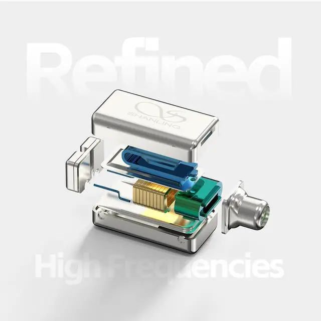 The "balanced" Nozzles feature more uniform tri-frequency energy, positively balanced sound, and high transparency, suiting various music genres. The "ambient" Nozzles have significantly enhanced low frequency and better dynamics. ^^ Exquisite Appearance ProcessThe shiny silver shell is precisely machined by 5-axis CNC and polished by hand. It is elegant and stylish, with an ergonomic design that is comfortable to wear. A single earphone weighs only 8.6 g.