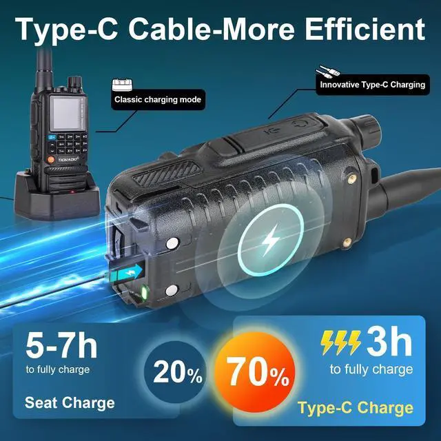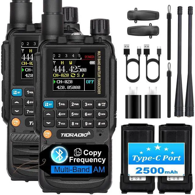 New upgrade-FeaturesThe H3 not only supports Bluetooth programming but also enables updatable firmware -!: ppt+* on at the same time unlocks the new world! 199CH, 50CTCSS, 105DCS, One-click to Import Local Repeater, 8-band receiving band, wireless radio Replication (Copy All date from other H3), Frequency Matching, DTMF function, MIC Gain, frog end tone, and 1.44 -inch TFT screen, MSG, Dual Watch, Dual display and Dual PPT, Enjoying customizable radio settings! ^^ Multi Programming OptionTD-H3 is the first radio equipped with internal programmable chip in history, which supports USB-C cable programming (In Side port). TD-H3 also supports Bluetooth programming via phone. While we have maintained the traditional 2-prong interface for compatibility and also support programming with CHIRP and CPS software, experiencing the convenience of Multiple programming. ^^ Comprehensive SupportIf you are facing any problems with the Tidradio H3, especially the battery, enjoy peace of mind with our dedicated technical team ready to assist you with any issues. Contact us via email for a satisfactory solution. ^^ One