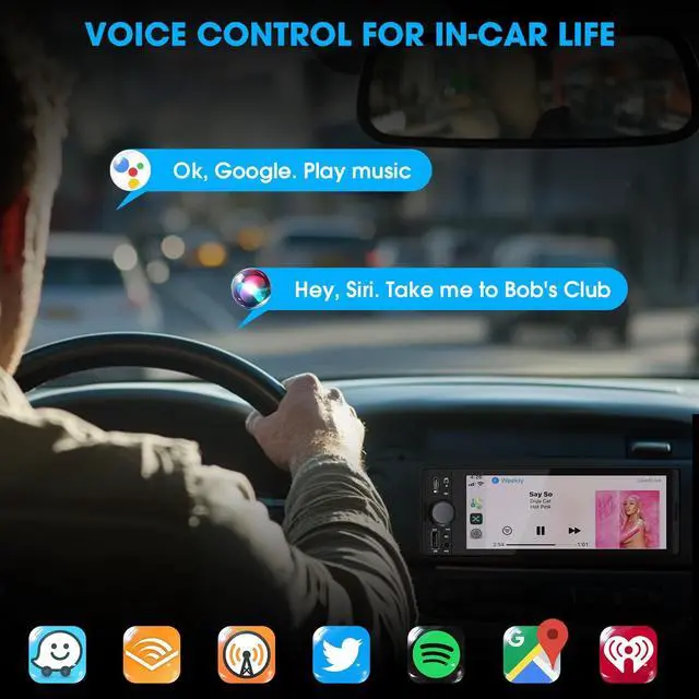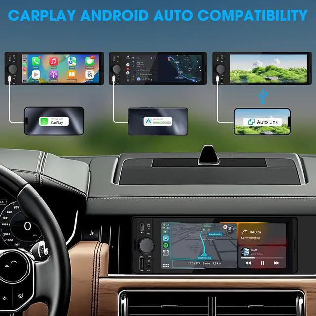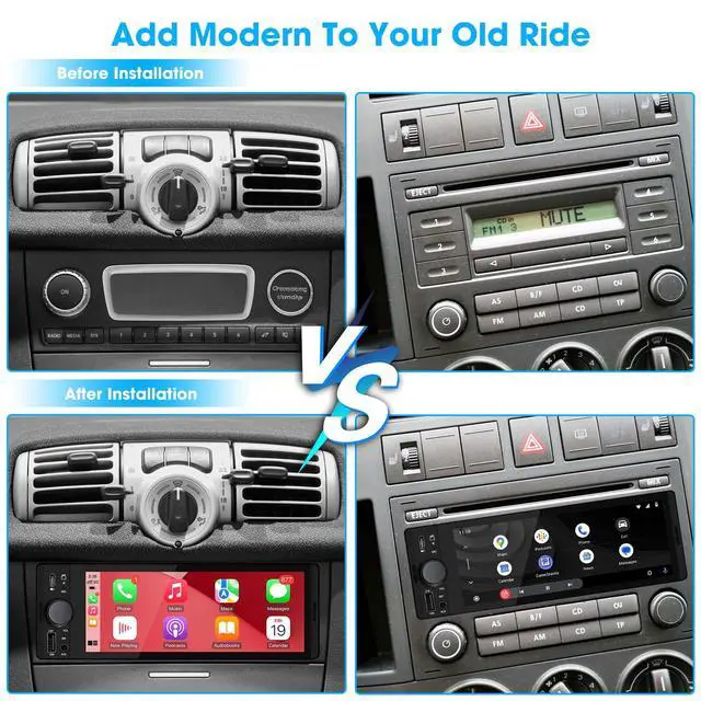 Single Din Format: Connected via USB cable, the single din car stereo is seamlessly integrated with your smartphone for music services, gps maps, favorite apps, siri google assistant, and hands-free calls on the bigger touch screen, upgrading your older CD cassette radio with a modern infotainment system ^^