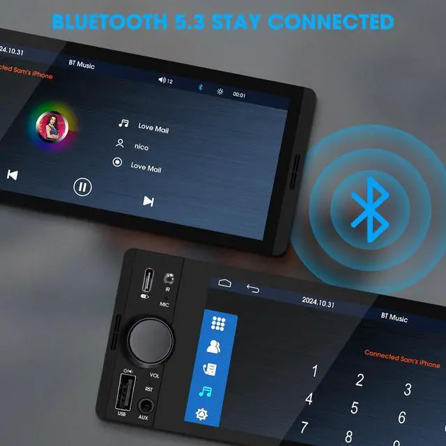 Bluetooth Connectivity & Built-in Microphone: The solid bluetooth connection and the mic on the face of the single din carplay radio enable you can be heard clearly when making hands-free calls and streaming high-quality audio ^^