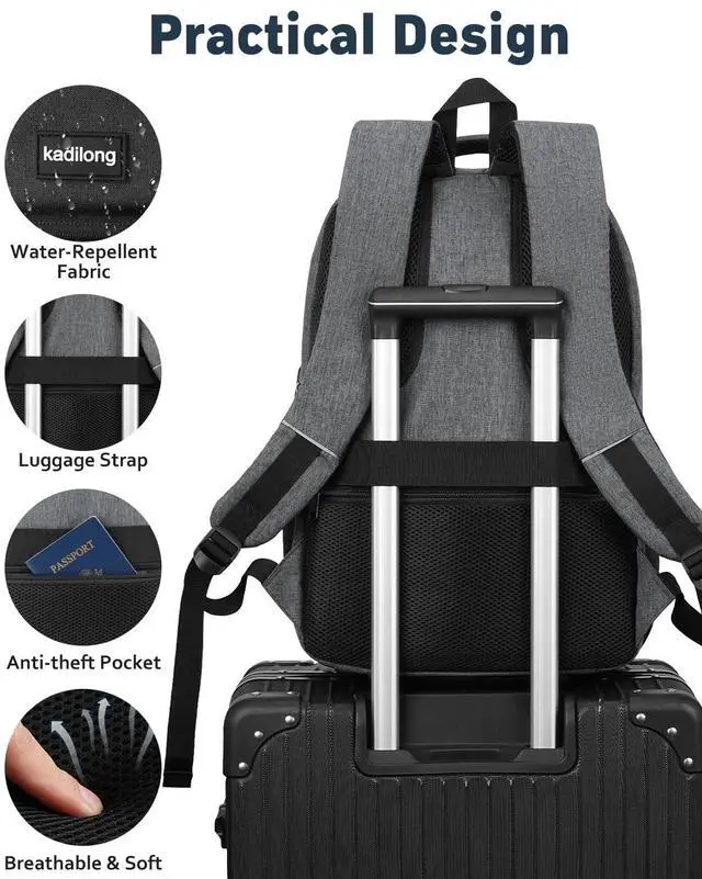 ^^ CONVENIENT&SAFE: Luggage strap allows travel bookbag slide over the suitcase upright handle tube for carrying. Anti-theft pocket on the back protect your valuables from thieves. making your journey and travel more convenient wherever you go.