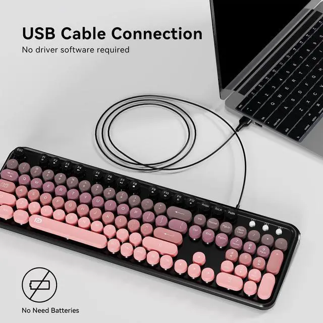 Fashion & Wired Mouse and Kyeboard - Stylish retro wired keyboard and mouse wireless with colorful round 104keys and glossy smooth edges to brighten your workspace. Featuring low-profile whisper-quet technology, this sleek combo ensures a distraction-free typing experience. Perfect for modern desks seeking cute wired keyboard and mouse aesthetics. ^^ 12 Hot Keys for Ultimate Efficiency - Multifunctional wired keyboard with mouse includes 12 hotkeys for media control, email, and search. Optimized for computer keyboard and mouse users in work, school, or entertainment. Streamline tasks with easy-access shortcuts.
