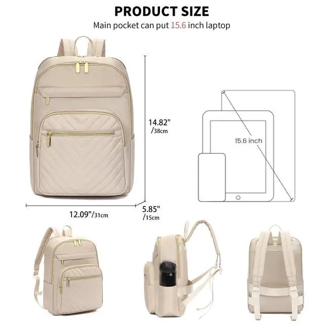 Size: Computer bag designed to be spacious and lightweight, ensuring a comfortable carrying experience. Measures 12.09" (L) x 5.85" (W) x 14.82" (H) / 31cm x 15cm x 38cm and weighs only 1.01 lbs. The large-capacity interior features dedicated compartments for laptop, iPad, A4 documents, a wallet, clothing, power bank, and other essentials. Stylish yet practical, this travel backpack holds everything you need on the go ^^ High Quality MaterialLaptop backpack is made of premium quilted nylon fabric. The sturdy hardware and smooth zippers not only enhance its visual appeal but also ensure reliable performance. This construction guarantees lasting durability and resilience for everyday use ^^