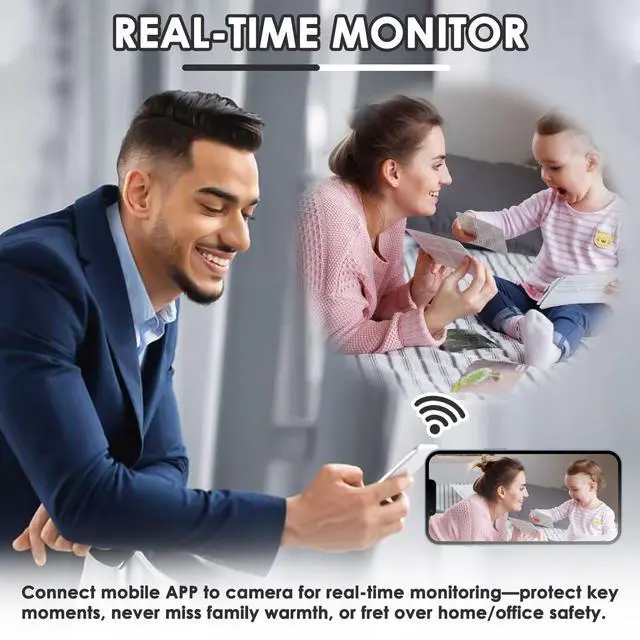 Real Time: With intelligent motion detection function, when motion is detected, it will snapshots and push notifications to you. The wireless Wi-Fi mini camera in clock could be connected to the internet network, no matter where you are in the world, you can see what is happening in real time in the APP ^^ Loop Recording and