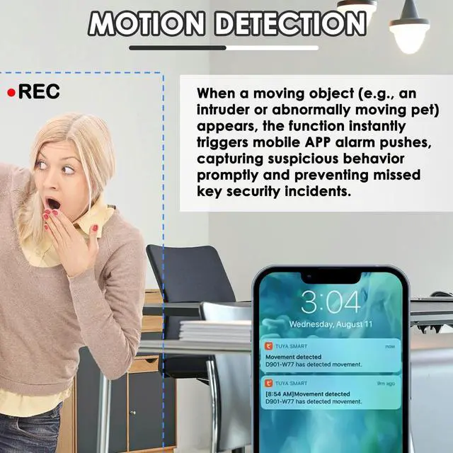 Night Vision: 1080P high-definition lens, which can clearly see what happened. It comes with excellent 5M infrared night vision, you can see details clearly even in dark environment ^^ Motion Detection and