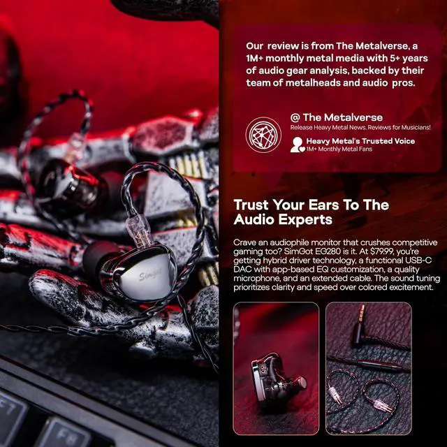: SIMGOT EG280 employs an innovative 1 dynamic driver + 1 planar driver per side configuration. Through precise acoustic tuning, it achieves seamless frequency transition and tonal consistency between different drivers. The 10mm 2nd-Gen SSPC crystalline LCP diaphragm dynamic driver, paired with a powerful magnetic circuit and dual-chamber system, effectively reduces distortion and enhances transient response. High frequencies are handled by a custom 6mm annular planar magnetic driver, delivering rich, delicate, and naturally extended detail without metallic harshness, while also being easier to drive.