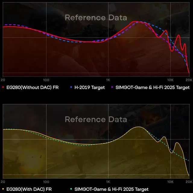 ^^ &: Achieves comprehensive audio optimization for both music and gaming scenarios through its adjustable PEQ technology and gaming sound card DAC. Based on the H-2019 and Game&Hi-Fi 2025 target curves, it not only enhances music and video performance but also provides tailored EQ tuning enhancements for different game genres including FPS, MOBA, rhythm games, and AAA titles. The EG280 fully leverages the high-resolution, high-fidelity characteristics of Hi-Fi headphones to deliver precise soundstage positioning and crystal-clear footstep reproduction.