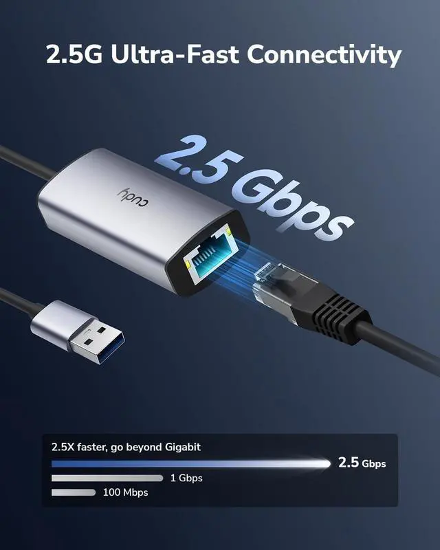 UE25A supports full 2500/1000/100Mbps gigabit ethernet performance over USB 3.0, faster and more reliable than most wireless connections. USB Backward is compatible with USB 2.0 / 1.1. ^^ 2.5