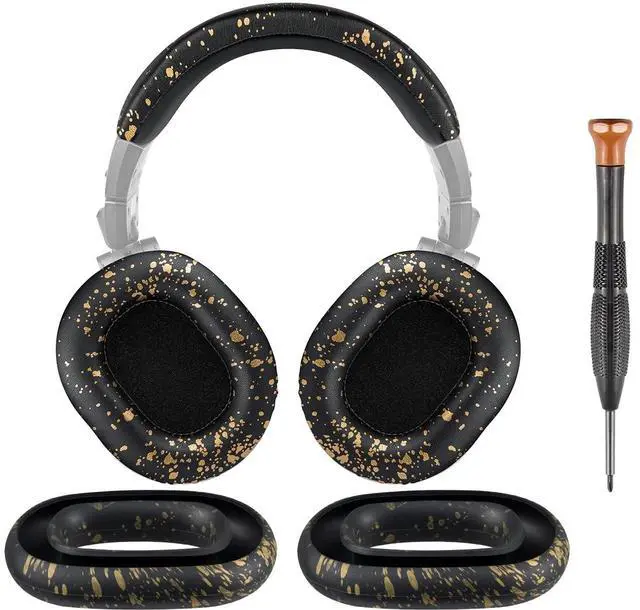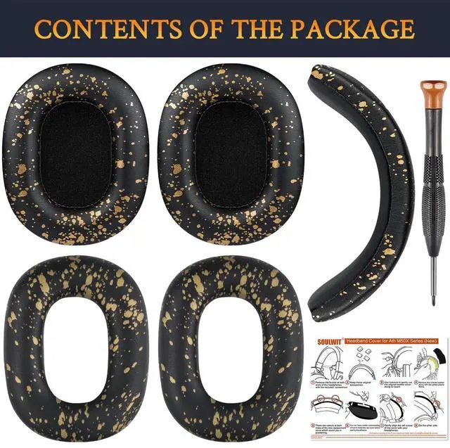 SOULWIT Ear Pads Cushions + Headband + Silicone Earpads Cover Protector, Replacement Kit for ATH M50, M50X, M50XWH, M50XBT, M50XBT2, M50S/LE Headphones, Replacement Repair Part (Black Gold)
