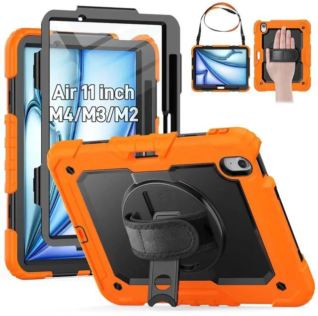 Compatible with iPad Air 11 inch Case M4 / M3 / M2 (2026 / 2025 / 2024) Model Number iPad Case A3459, A3460, A3463, A3266, A3267, A3270, A2902, A2903, A2904. NO Pencil * Easy to install and you can find INSTALLATION VIDEO on this page. ^^ Shockproof & Screen Protector -- This iPad Air11 Case designed with durable anti shock material, built-in screen protector (2 covers to choose, one with built-in screen protector and one without), strong protection and keep your ipad air 11 safe from shock, drop, scratches in daily use.