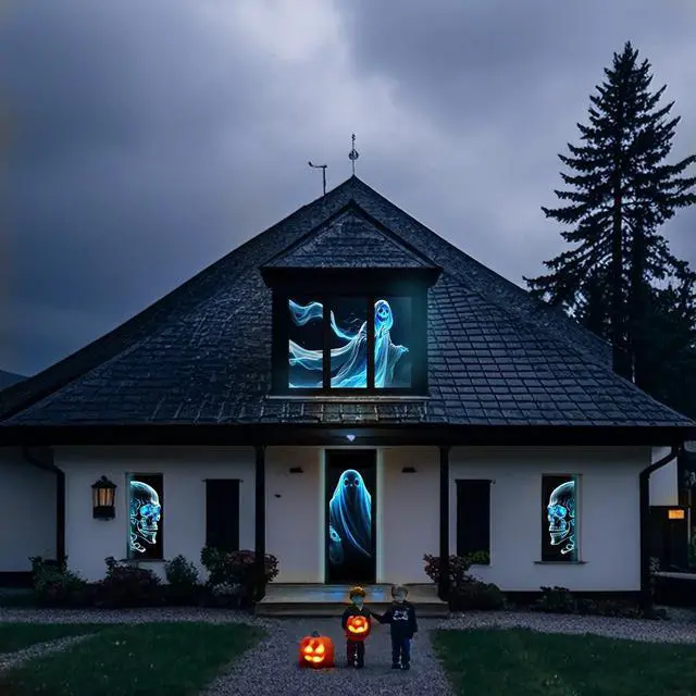 Holographic Technology]: The screen uses advanced holographic rear projection technology, providing crisp, high-definition images with exceptional clarity and vibrant colors. This ensures your Halloween videos and other multimedia content are displayed with impressive detail and contrast.