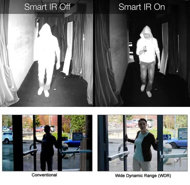 IR-Cut Filter: True day/night (ICR) Captures Sharp, Clear Images in Low Light and at Night ^^ Applicable in Finance, Supermarkets, telecommunications, hotels, offices, corridors, stairs, garage... for outdoor and indoor use.