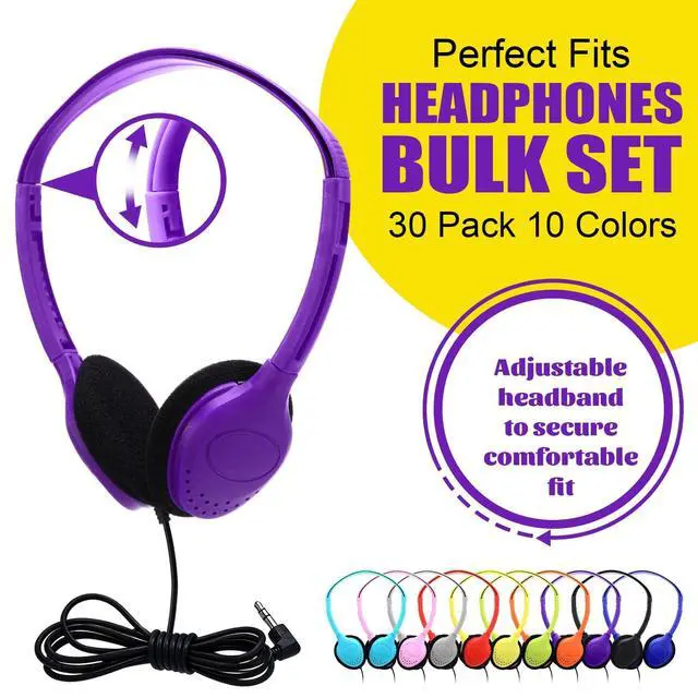 Features: 30 Pack headphones multicolor adjustable wire classroom headphones library on ear headphones comfortable stereo school headphones with 3.5 mm earphones plug for student, adults, travelImprove