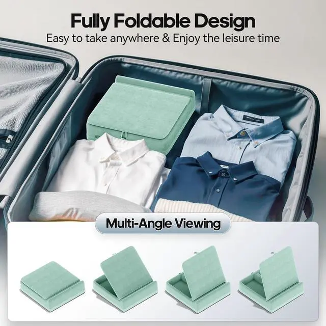 ^^ Foldable Design - Our newly upgraded tablet stand for lap is lighter and more portable, fully foldable design, easy to carry, can be easily put into luggage without taking up space, perfect for traveling. The portable iPad pillow stand is perfect for carrying around for long trips in the car or on the plane. ^^ Skin-Friendly Design- This tablet stand is made of high quality material, short suede surface is skin friendly and soft, not easy to deform. Perfect for watching videos, playing games, reading books in bed or on the sofa, etc.