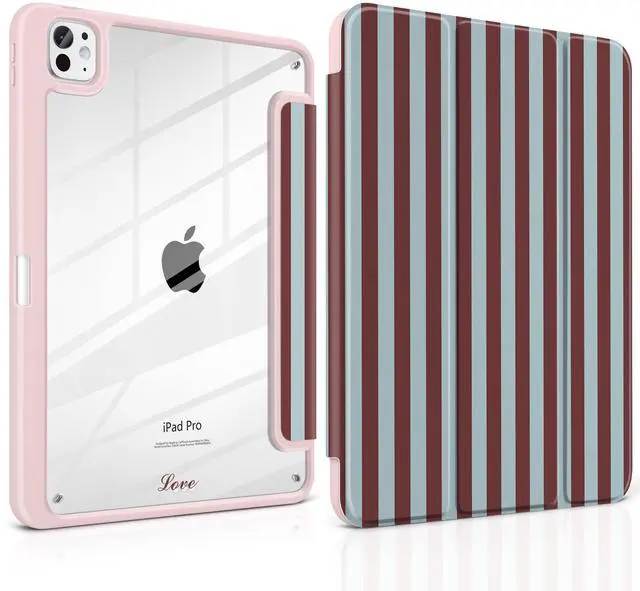 TWOLSKOO Case for iPad Pro 11-inch (M5 2025 / M4 2024), Clear Acrylic Back with TPU Bumper, Pencil Holder, Trifold Stand, Auto Sleep/Wake, Burgundy Stripes
